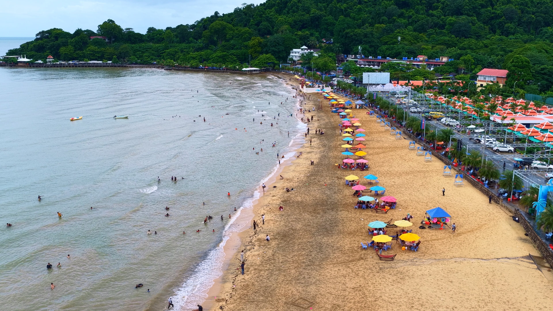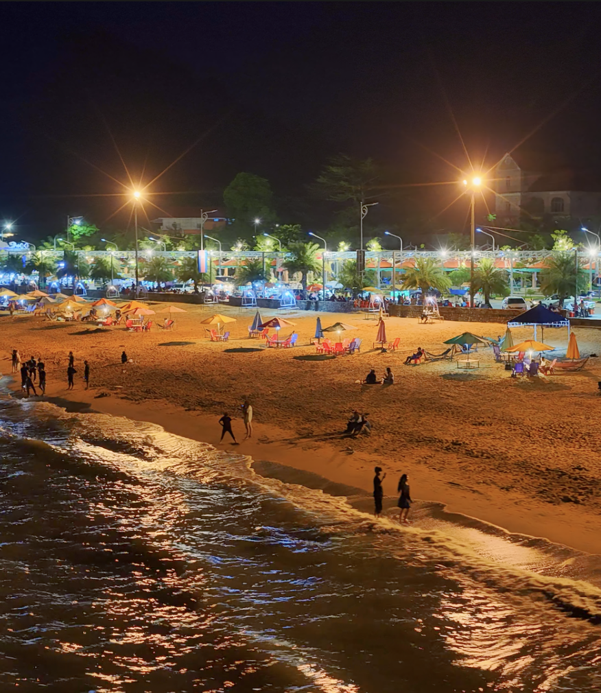 On weekends and holidays, Cambodian families arrive by the minivan-full, armed with picnic mats, grilled squid, parasols, and Bluetooth speakers. Kids splash in the gentle surf while aunties peel mangoes and sip iced sugarcane.